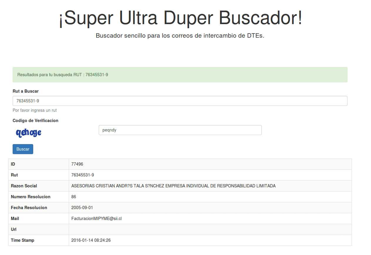 Una vez aquí, simplemente ponemos el rut de la empresa de la cual necesitamos la información.